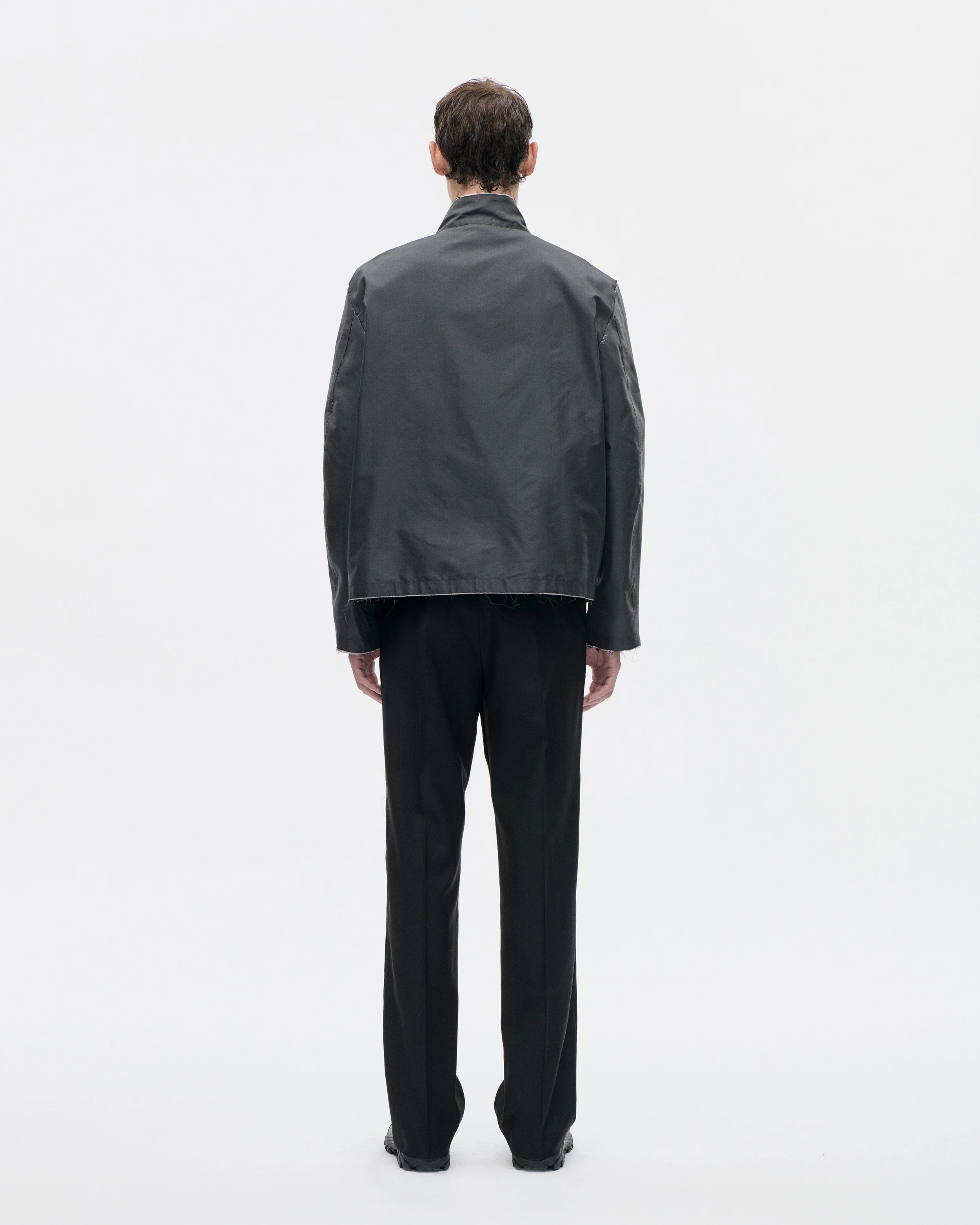 Produced in an Italian deadstock polyester/silk fabric. Our Field Jacket has a regular fit and features a RIRI metal zipper and press button closure on center front. Its unlined and made with fraying seams on armhole and front.Ā