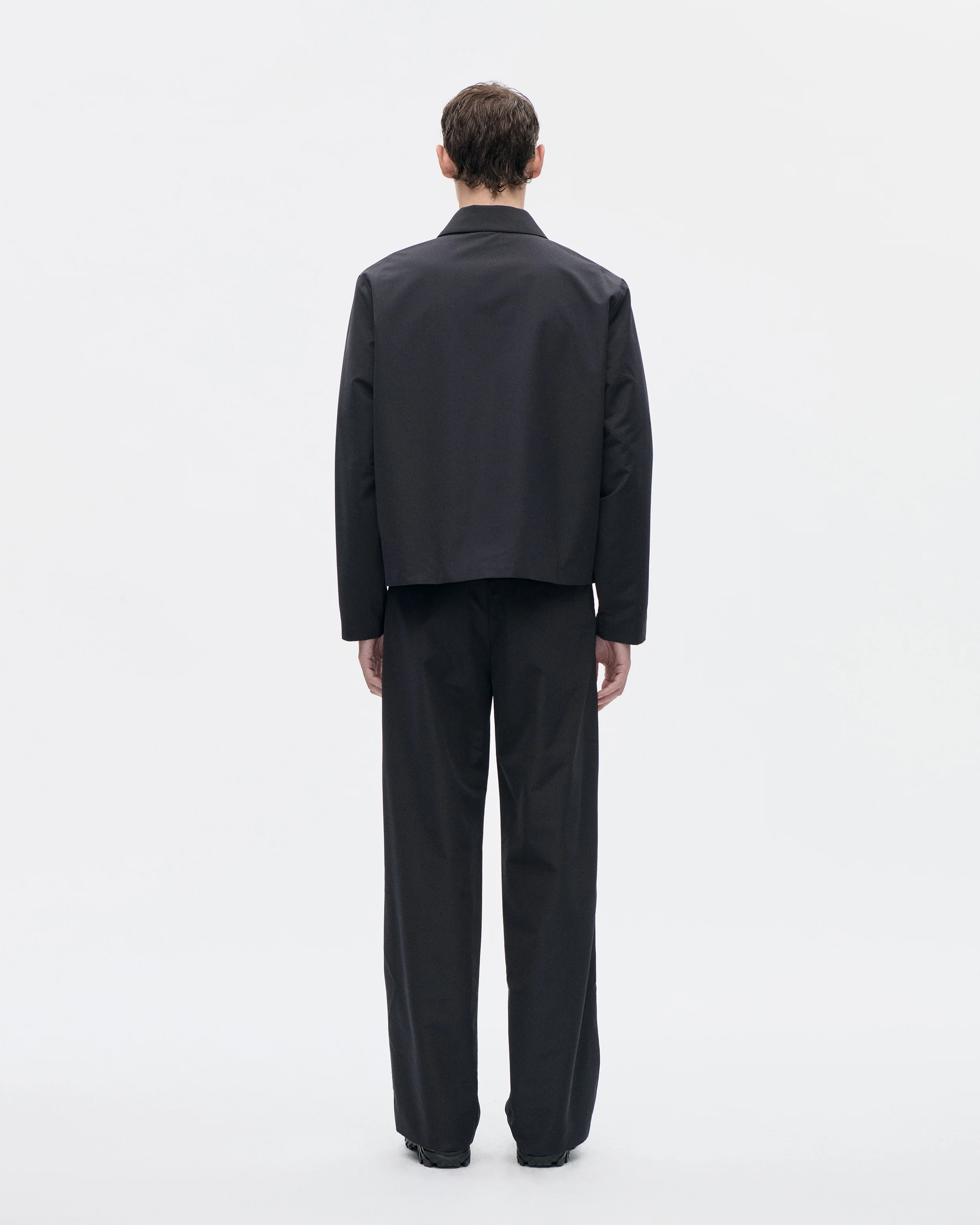 Produced in a deadstock Italian wool/nylon fabric. The Officer Jacket has a slightly cropped tailored fit, features hidden push buttons and a straight hem.
