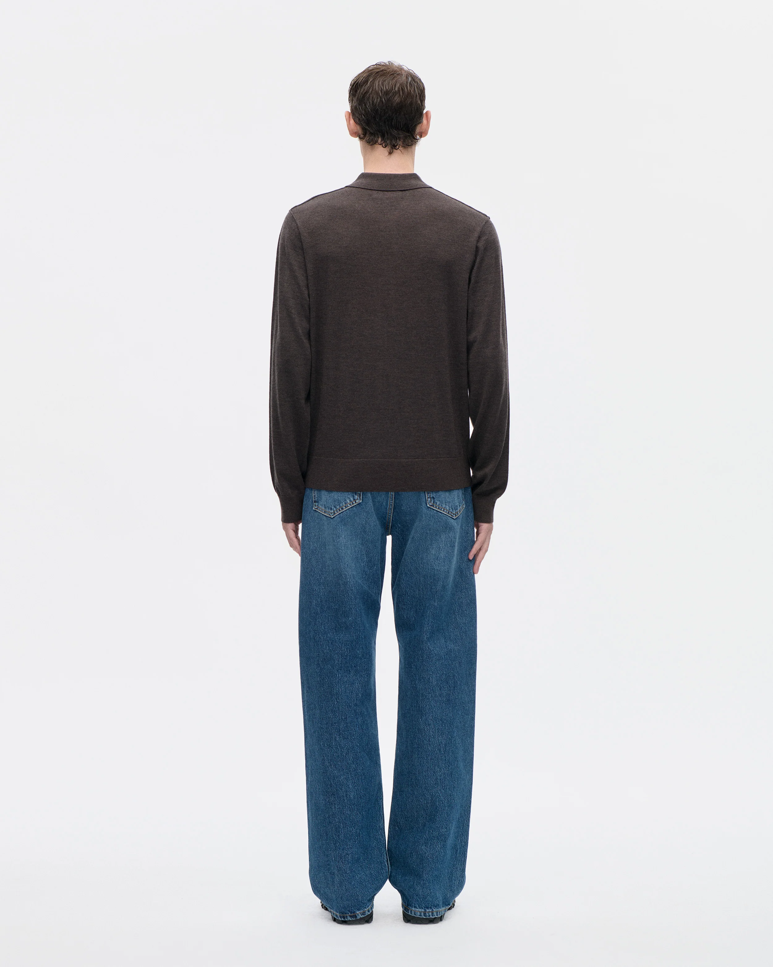 Our classic knit polo is a made in a soft merino wool yarn, knit on an extra fine 16gg machine. It is made with rib finishing on bottom and cuff sleeve. Collar is knit in a milano stitch. Regular fit. Inside out seam detail on shoulder armhole. Real mother of pearl buttons.