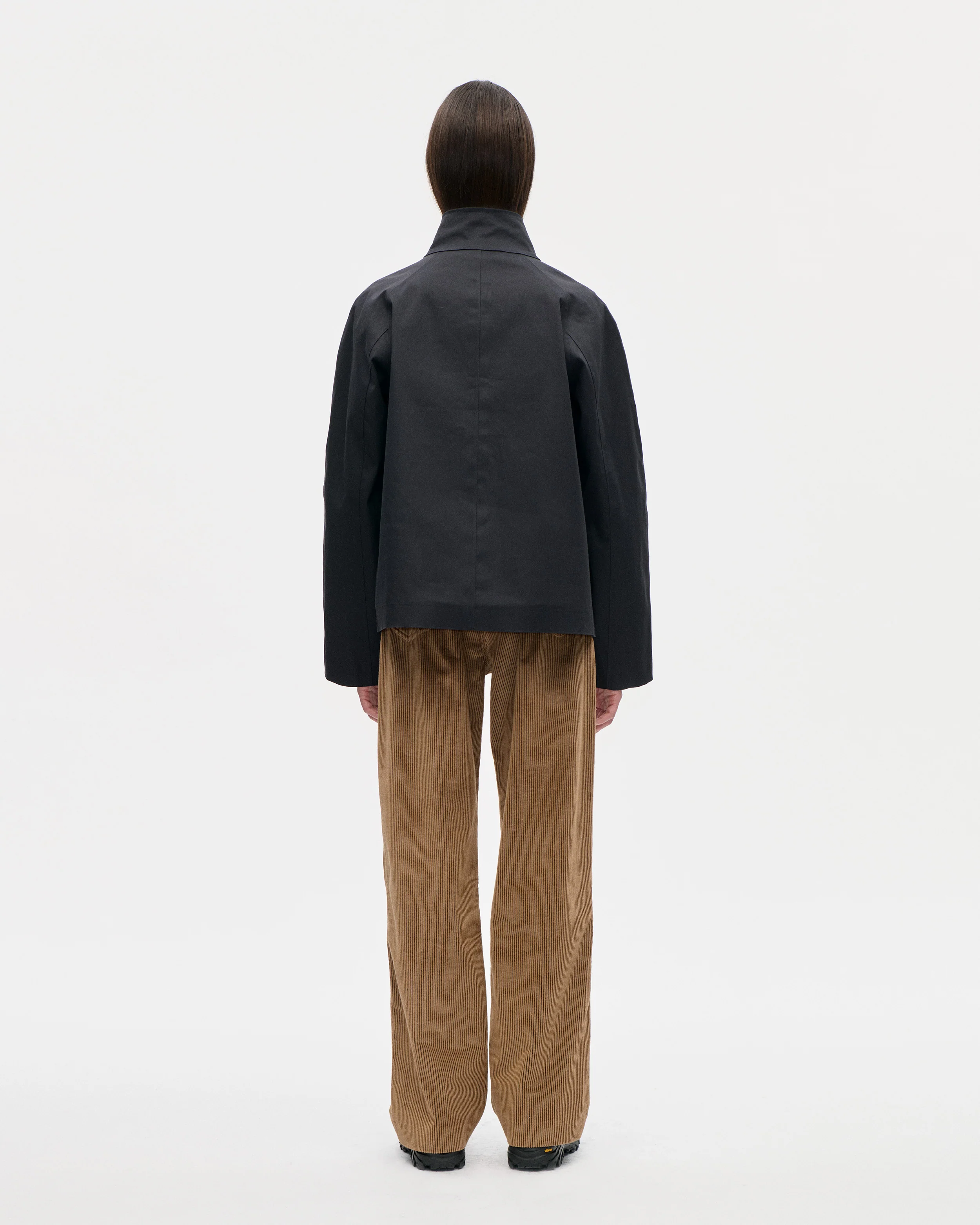 A special piece handmade in Scotland. Features a stand up collar, 2-way chunky metal RIRI zipper, and metal chain hanger loop. Fully taped bonded cotton, making it 100% waterproof.Â