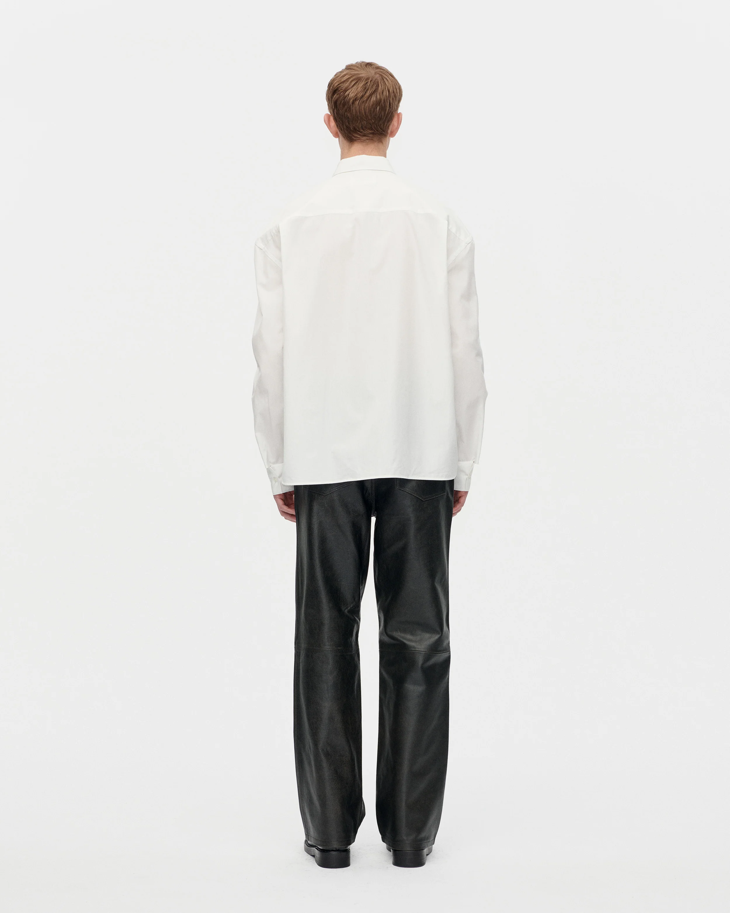 Produced in an deadstock Italian cotton poplin. Sleepy Shirt Luxor has a relaxed fit, features white real mother pearl buttons, drop shoulders and a straight hem.